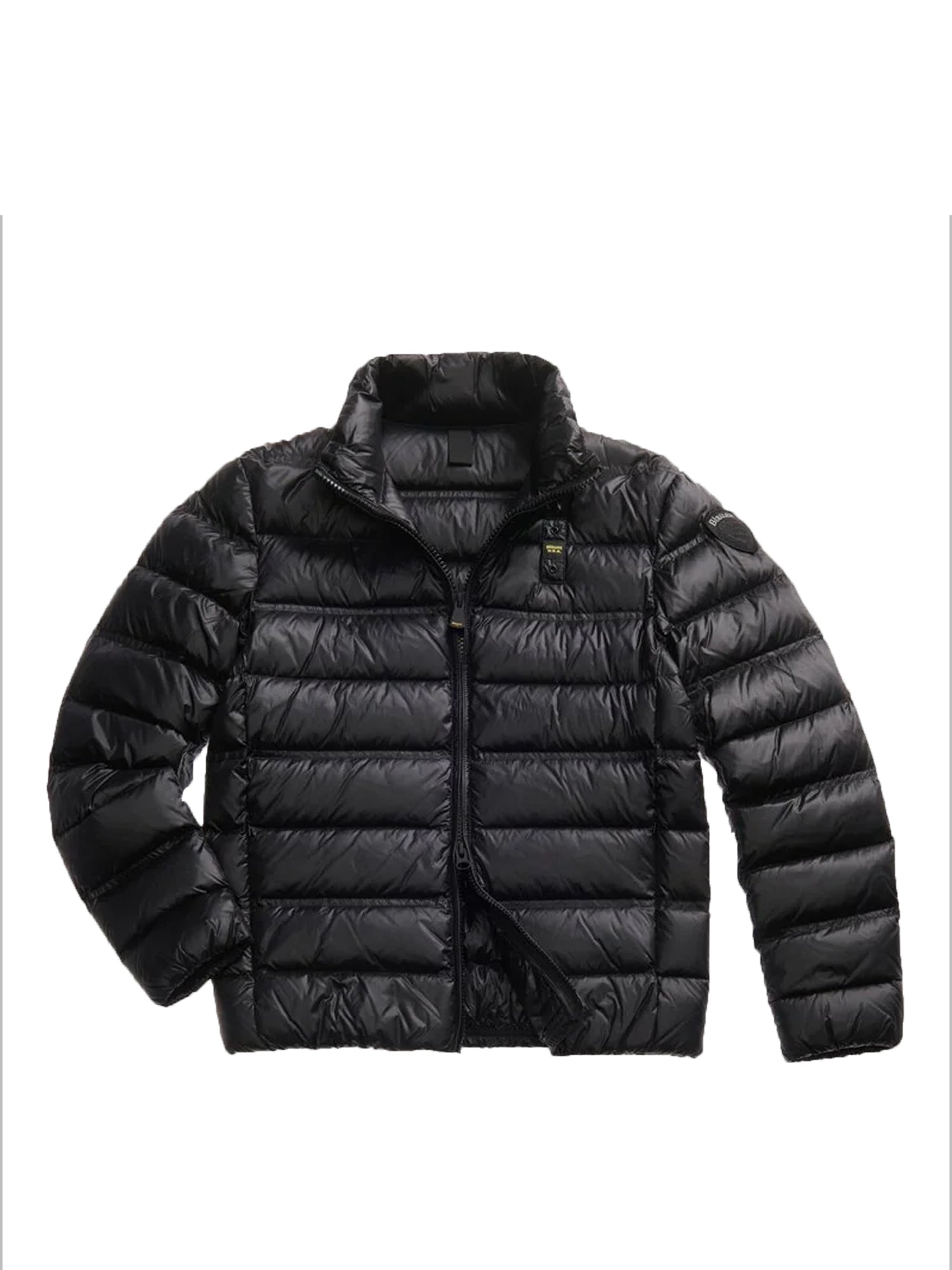 piumino lucido trapuntato a righe orizzontali singole e doppie intervallate. capo iconico blauer con imbottitura naturale in piuma, calda e non ingombrante. pensato per chi vuol essere sempre alla moda ma con uno spirito sportivo.