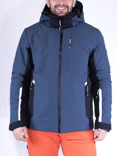 giacca sci realizzata in tessuto oxford, chiusura con cerniera a vista, cappuccio staccabile con cerniera e coulisse di regolazione, interno collo in tricot, chiusura frontale con cerniera una tasca sul carre' parte sinistra e due tasche basse con cerniera nascosta, taschino porta ski pass su manica sinistra con cerniera, polsi con alamaro e velcro di regolazione, tasca interna parte sinistra chiusa con cerniera, gonnellina interna antineve, fondo dietro dritto e regolabile con coulisse
