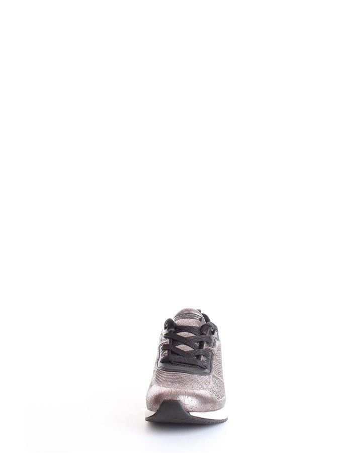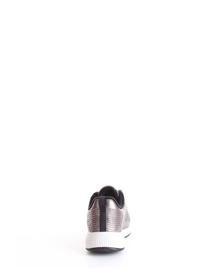 Tomaia in tessuto mesh liscio con finitura metallizzata.