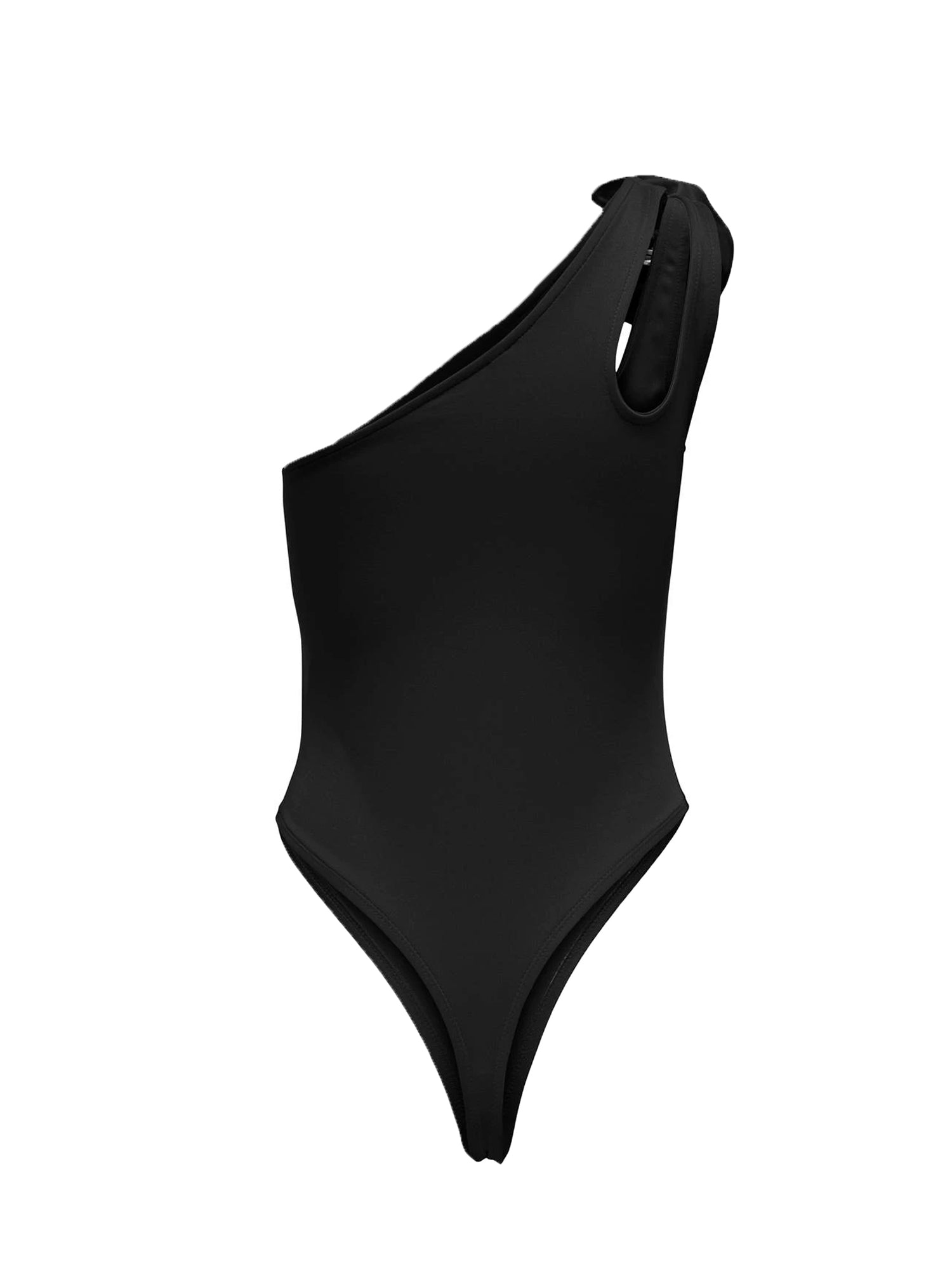 Body monospalla con dettaglio cut-out e rosa.