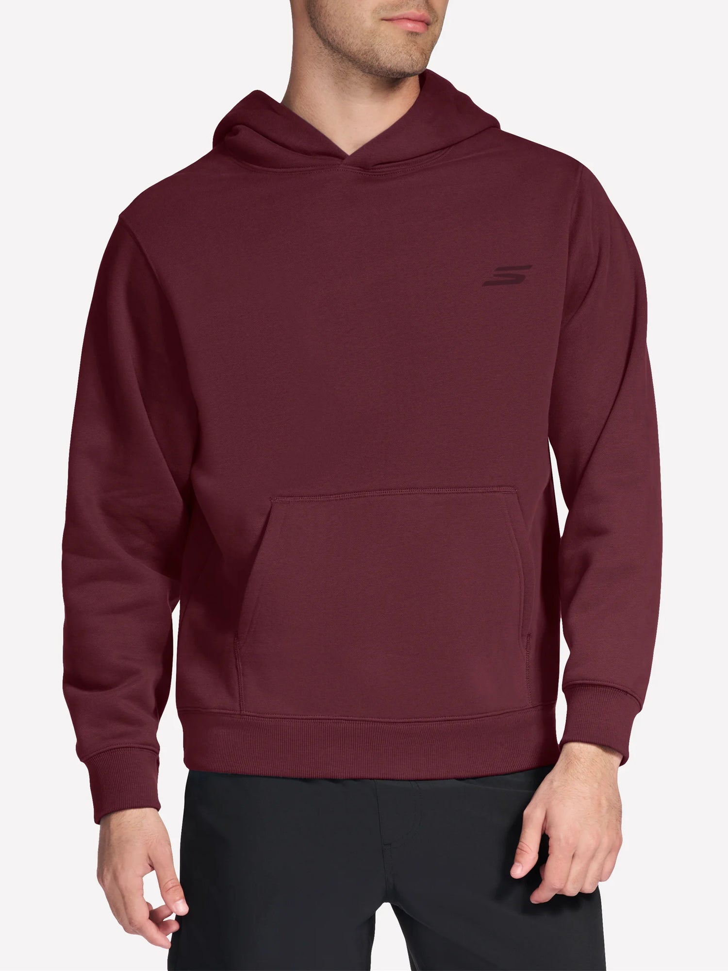 questa felpa essenziale è realizzata in skech-sweats�"� max soft fleece traspirante e presenta un cappuccio a doppio strato, una tasca a marsupio e una fascia a coste su polsini e fondo.