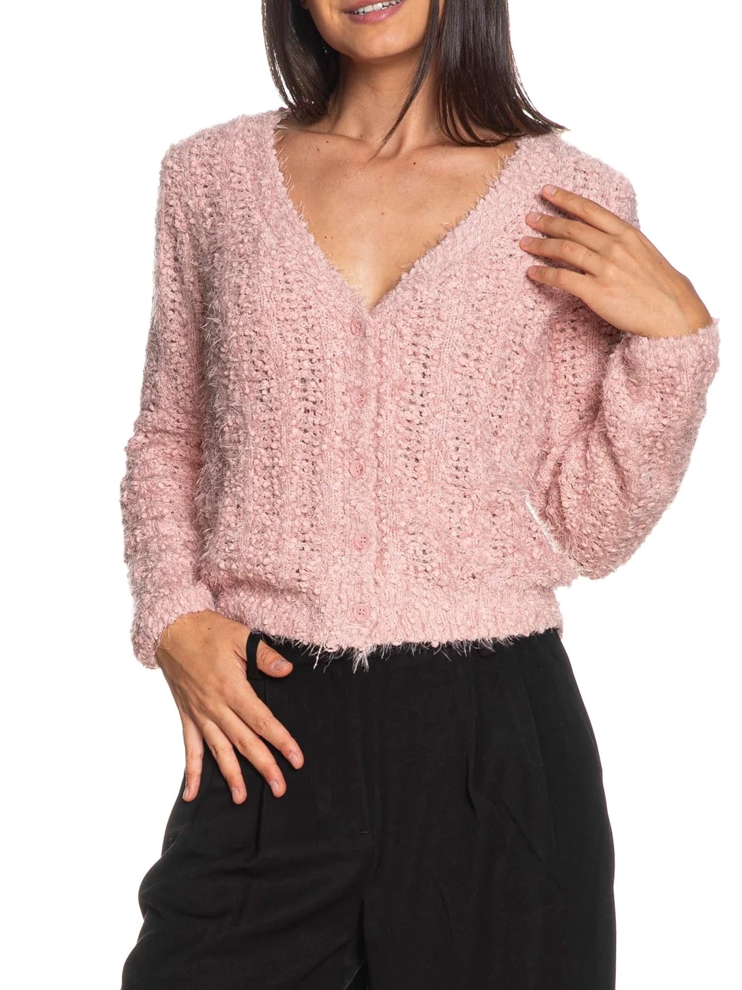 cardigan in maglia traforata e testurizzata.